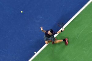 Canada’s Denis Shapovalov serves the ball to Spain’s Carreno Busta
